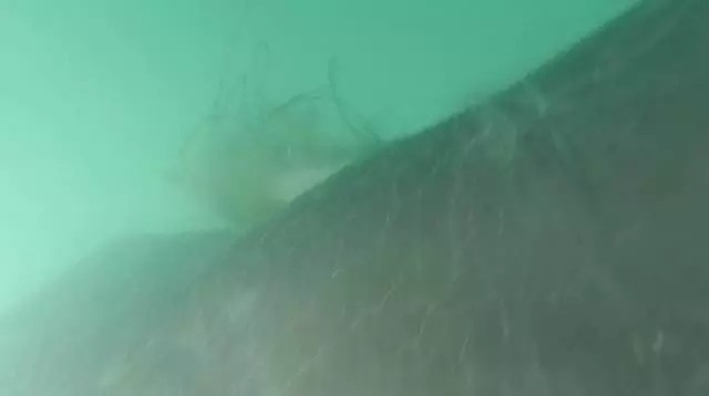 潜水员潜到水下,渔网体积很大,其中一名潜水员刚下水就被渔网缠住了脚。还好没有大碍。一开始鲸鱼并没有张开嘴巴,当身上的渔网被清理后,它主动张开了嘴巴。潜水员把手伸进鲸鱼嘴巴开始慢慢解渔网,直至渔网被完全解开。