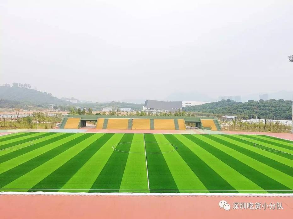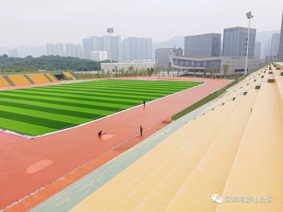 新的体育场是明快的色块,看台是清新的黄绿色,草坪和没铺好的跑道看起来倒像个大西瓜,我已经幻想了在这里拍个小拖,牵个小手在操场上散步的场景。