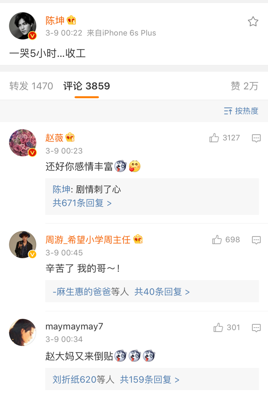 陈坤发了一条微博,赵薇迅速来评论,这两个明星之间没什么波澜,可是粉丝们都坐不住了,纷纷跑出来指责赵薇倒贴。