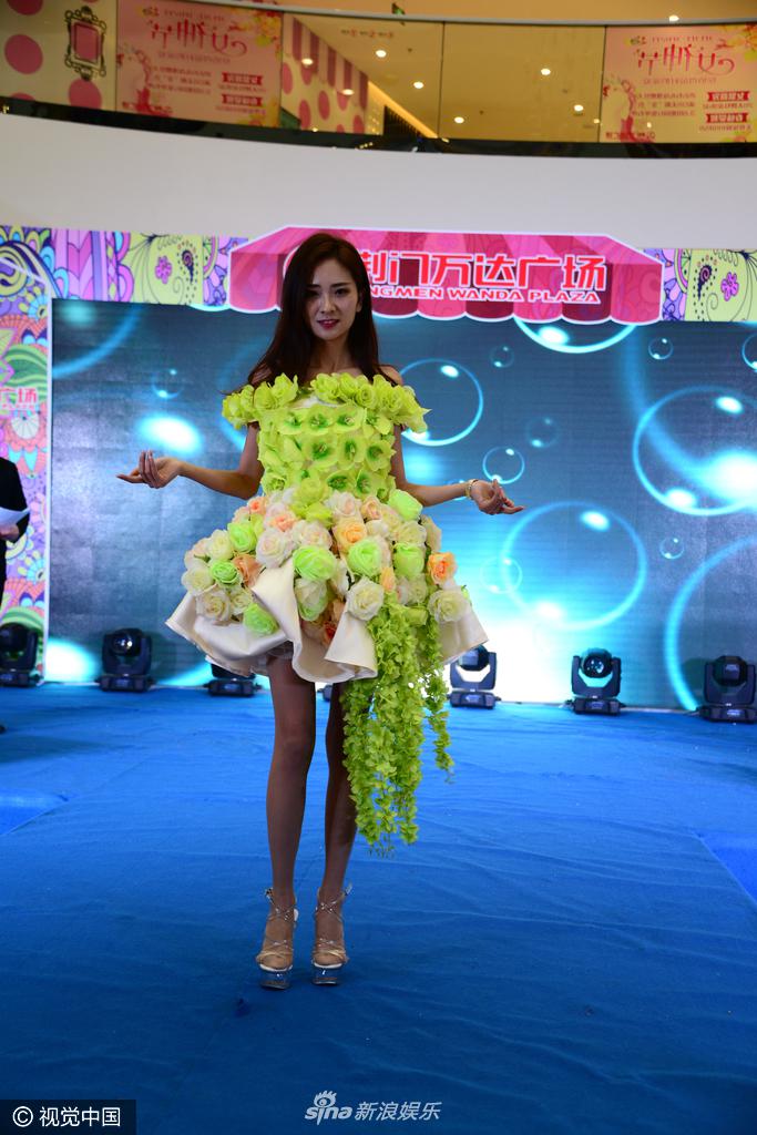 12日,在模特界有“小杨幂”之称的超模俞晓,花团锦簇造型助阵2017“万达杯”鄂中超模大赛总决赛,在主持人互动下,教大老爷们走猫步。性感美腿,不输杨幂本尊。