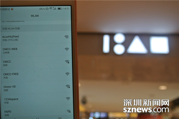 记者的手机已经自动连接了“eLuoHu” 和“SZ-WLAN”