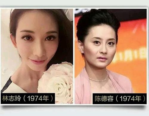 林志玲也是不老女神之一,和同是1974年出生的琼瑶女主陈德容相比林志玲还是有少女感的,但是陈德容已经满脸沧桑像大妈了。