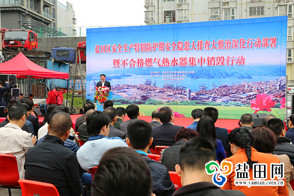 深圳新闻网盐田讯(记者 邓雪婷)3月16日上午,盐田区在盐田街道江屋村举行安全生产特别防护期安全隐患大排查大整治深化行动部署,暨不合格燃气热水器集中销毁行动。记者了解到,现场共销毁2086台不合格燃气热水器。区委书记杜玲,区委副书记、区长吴德林,区领导时卫干,王琨,周敏以及辖区居民代表共200余人参加了活动。