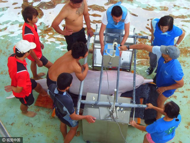 但不幸的是,在救援中心生活了 45 天之后,白海豚 " 梅梅 " 还是离开了我们。白海豚临死之前出现明显的神经症状,脊柱出现弯曲,游水时不时有下沉现象,吃进的鱼大量吐出。但 CT 扫描之后,仍然未查出致命疾病。