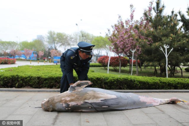 2016 年,山东日照灯塔风景区一条珍贵的海豚在海边漂浮,工作人员将海豚尸体捞上岸。海豚已经高度腐烂,身体发黄,斑点遍布全身,死状十分可怜。