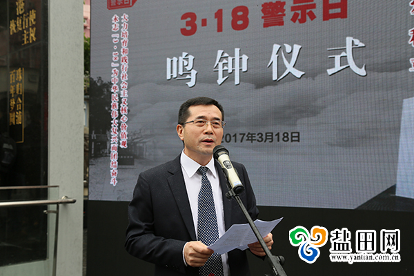 深圳新闻网盐田讯(记者 陈琳君 潘峰)3月18日上午,“中英街3.18警示日”活动在中英街历史博物馆广场举行。深圳市委常委、宣传部部长李小甘,深圳市委宣传部副部长、市文明办主任吴定海,盐田区委书记杜玲,区委副书记、区长吴德林等一起登上中英街1号界碑前的警世钟亭,共同鸣响了18声浑厚的警世钟声,警示人们勿忘国耻,同时也拉开了深圳市2017年“中英街3.18警示日”系列活动的序幕。