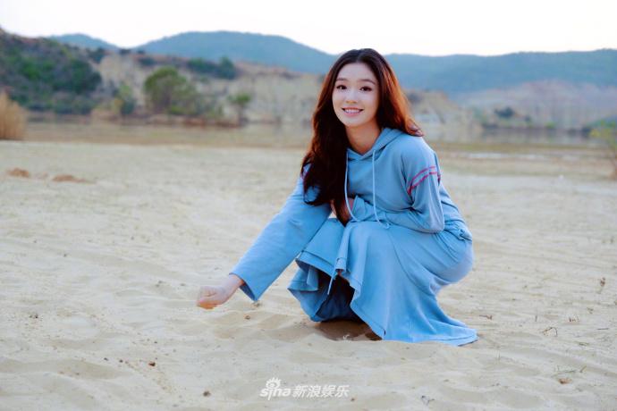 3月19日,林允在微博晒出一组照片,她穿着蓝色长裙,在沙滩玩耍,梨涡浅笑,少女感十足。