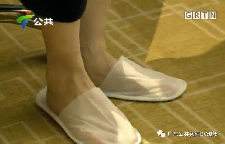 当时发生事故的酒店和酒店提供的一次性拖鞋▲