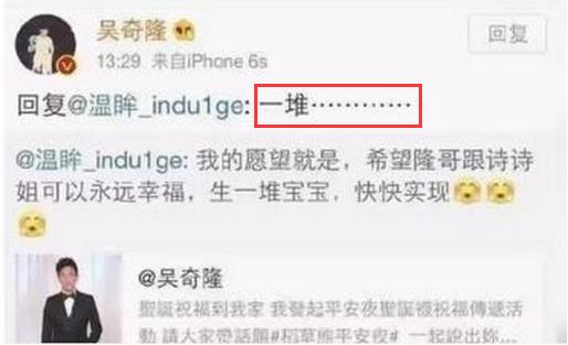 虽然两人都没有回应过怀孕的传闻,但吴奇隆在微博上回复了粉丝: “生一堆宝宝,快快实现”的祝福,看来两人是有计划生宝宝的。