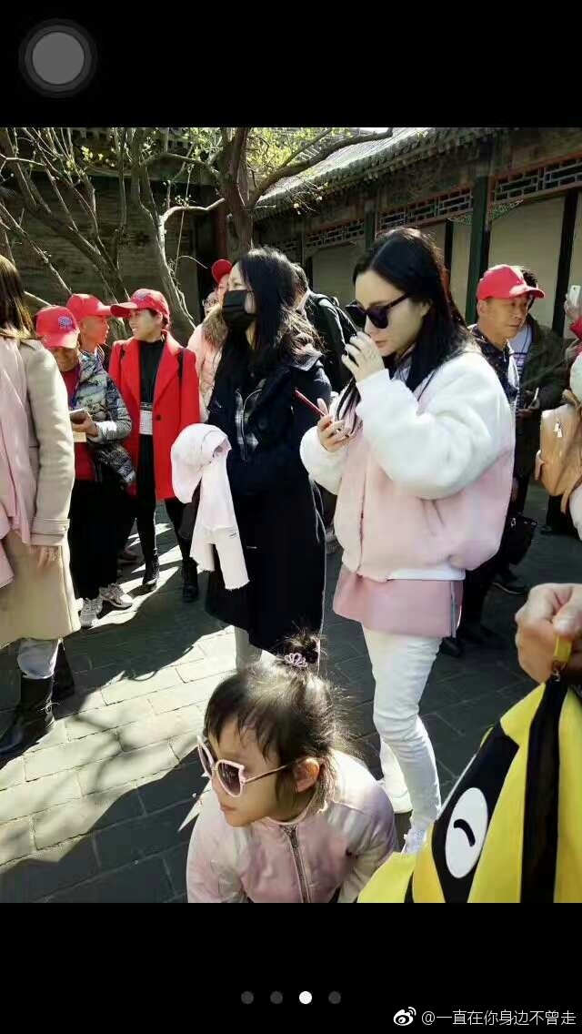 李小璐母女颐和园游玩 甜馨墨镜丸子头超酷
