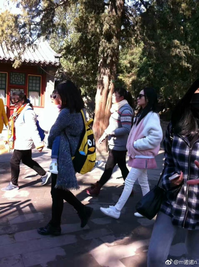 李小璐母女颐和园游玩 甜馨墨镜丸子头超酷