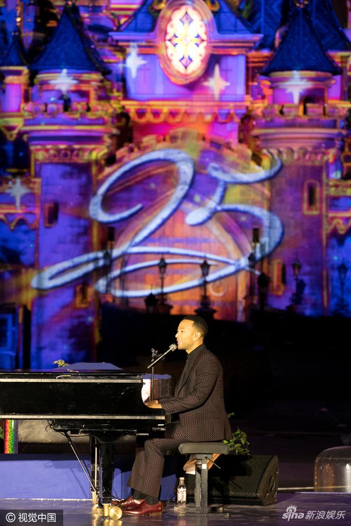 当地时间2017年3月25日,法国巴黎,迪士尼乐园巴黎25周年庆典。约翰·传奇现场自弹自唱,烟火绚丽气氛浪漫。(图、文/视觉中国)