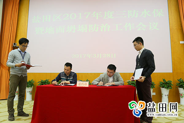 盐田区召开2017年度三防水保暨地面坍塌防治工作会议 会上,罗毅代表区政府与各街道及中英街管理局签署2017年度三防安全责任书。罗毅表示,要突出重点、补齐短板,合力打造三项工作的“深圳标准”。各单位要在行业底数清楚的基础上“拉网排雷”,不留死角,继续深挖细查,确保及早发现和消除新的隐患。对于水库、水闸、泵站、危险边坡、低洼易涝区、旧村旧工业区、地下车库、建设工地等高危区域和重点部位,以及在建工地、地下管线等,各职能部门要各司其职,认真做好汛前检查、日常巡查监测和隐患排查治理等工作。对于本辖区、本系统、本单位的薄弱环节,要做到心中有数,下决心、下力气,狠抓整改提升,在动态中不断消除隐患。