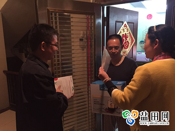 深圳新闻网盐田讯 为提升滨海社区市容环境,加大居民对市容环境民意调查的知晓率,引导居民积极参与市容环境工作,3月28日晚,滨海社区党委书记、工作站站长、居委会主任王美红,带队走访辖区多户居民,走进居民家中开展市容环境民调普及宣传工作。