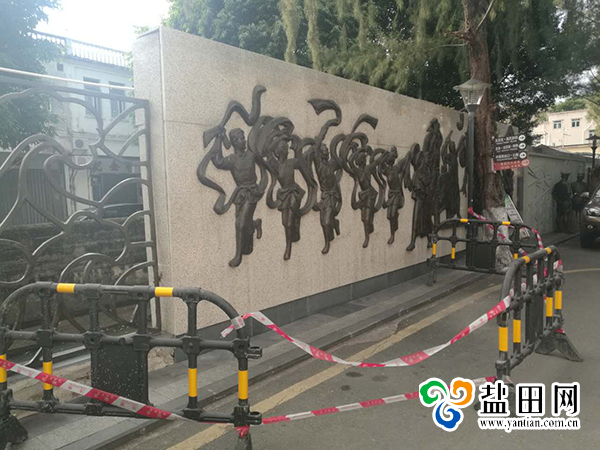 发现隐患后,安监办工作人员在隐患处放上铁马拉上警示胶带提醒居民与游客切勿靠近危险点。同时,为了消除隐患,中英街管理局聘请专业的装修公司进行施工修缮,对墙体的花岗岩进行修复和加固,同时翻新刷漆提升市容环境。