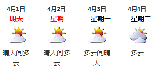 市气象台预测,4月1日白天晴好干燥,最低气温降至15℃左右,白天阳光下最高气温可升至23℃左右,昼夜温差较大;2-4日清明假期期间,大致晴好、空气干燥,昼夜温差较大,气温逐日回升;5-6日云量增多、湿度增大,天气趋于暖湿。