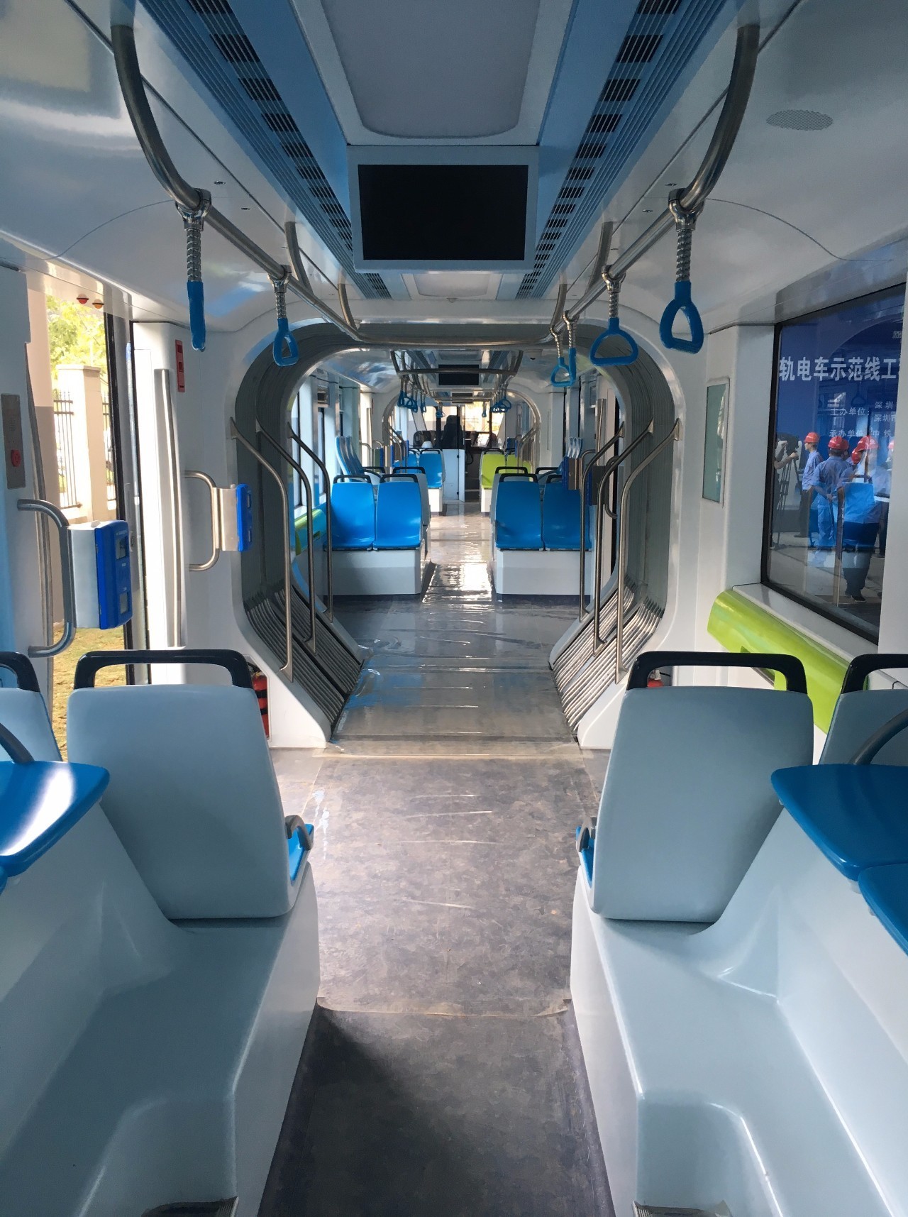 深圳龙华现代有轨电车“土豪金”上路试跑时的内景