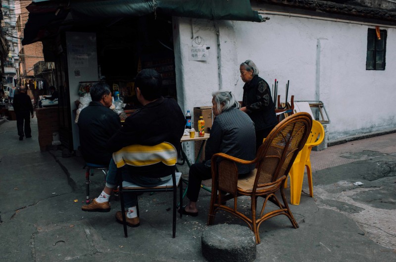 如今桌球场的生意已经大不如从前了,几个老人家坐在档口喝茶闲话家常。人散去后,顽皮的猫便霸占上椅子。