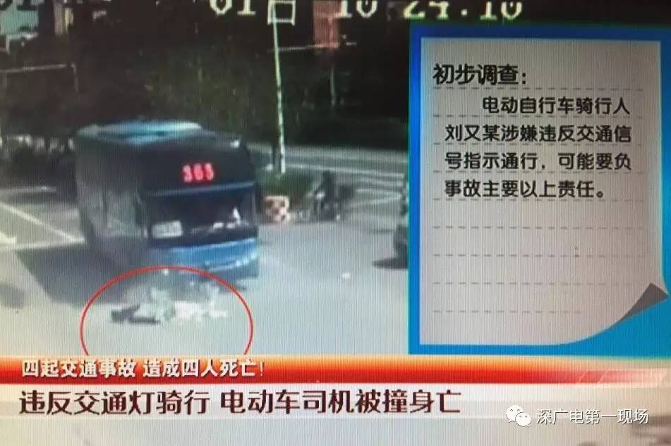 初步调查,电动自行车骑行人刘又某涉嫌违反交通信号指示通行,可能要负事故主要以上责任。