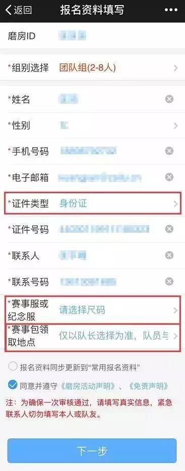 (2)报名资料填写界面底部勾选“同步保存至常用报名信息”可将经常使用的基本报名信息保存,方便下次活动直接使用。