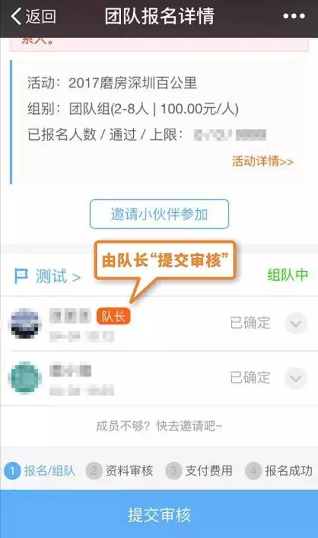 三、队长确认队员后并确认信息无误,由队长“提交审核”。