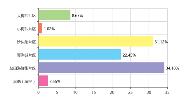 对于本次即将开始的盐田区查餐厅行动,最多市民提议检查的片区是盐田海鲜街片区,其中网页端有1794票(34.18%),微信端有649票(39%)。排名第二的是 沙头角片区,排名第三的是壹海城片区。
