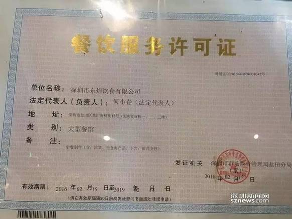 2.许多海鲜酒楼都有售卖海鲜刺生,所以执法人员特别检查了餐饮服务许可证上的经营许可范围是否含有生食海产品,发现东煌海鲜酒楼的经营许可范围包含了此项。