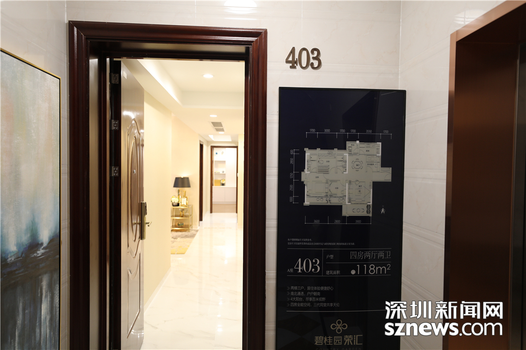 碧桂园·荣汇 A座四房两厅两卫118平米户型样板间,A座的所有房均为商品房,售价在6.3-6.7万元/平方。