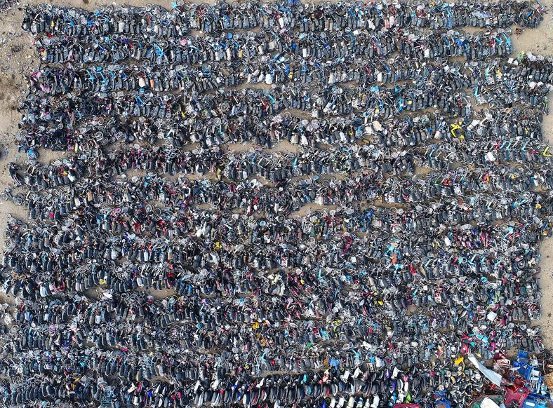 2017年4月4日,深圳宝龙交警中队扣车场内,数万辆摩托车和汽车将数个足球场大的地方摆放得满满当当,车辆如千军万马在列队,场面非常壮观。视觉中国