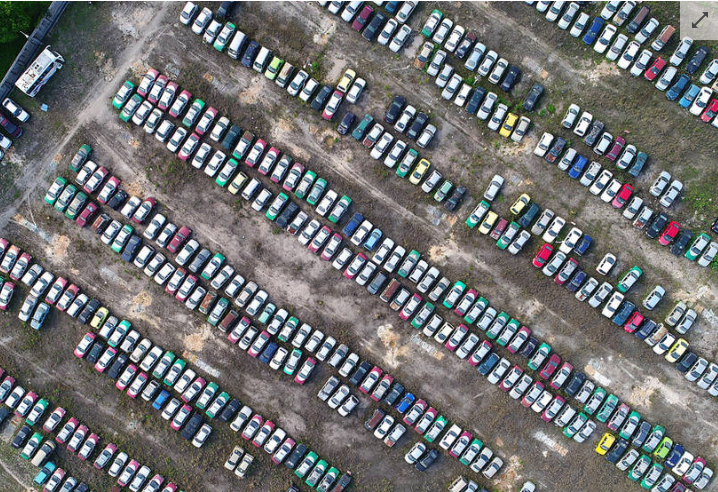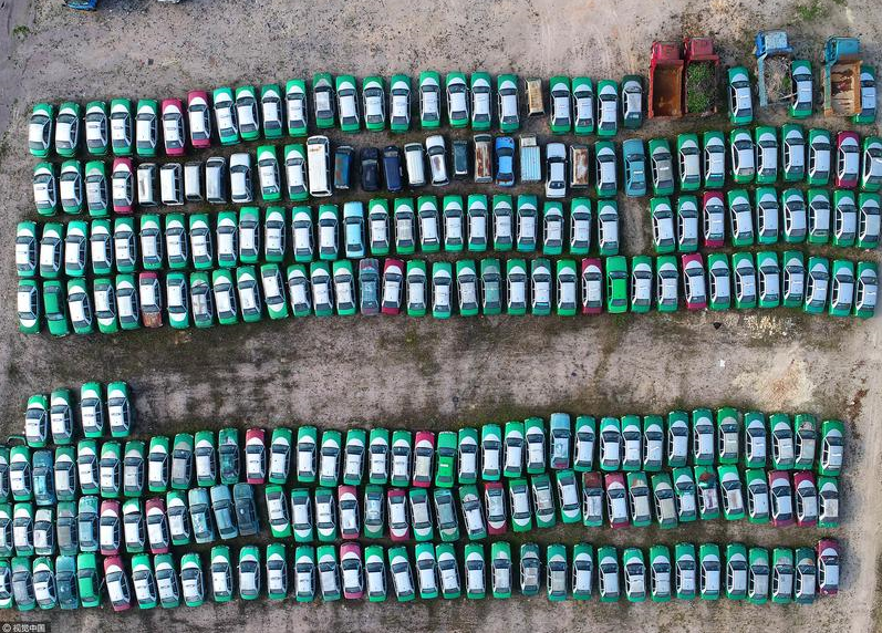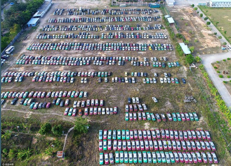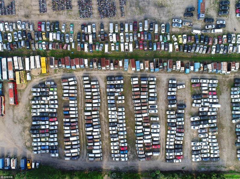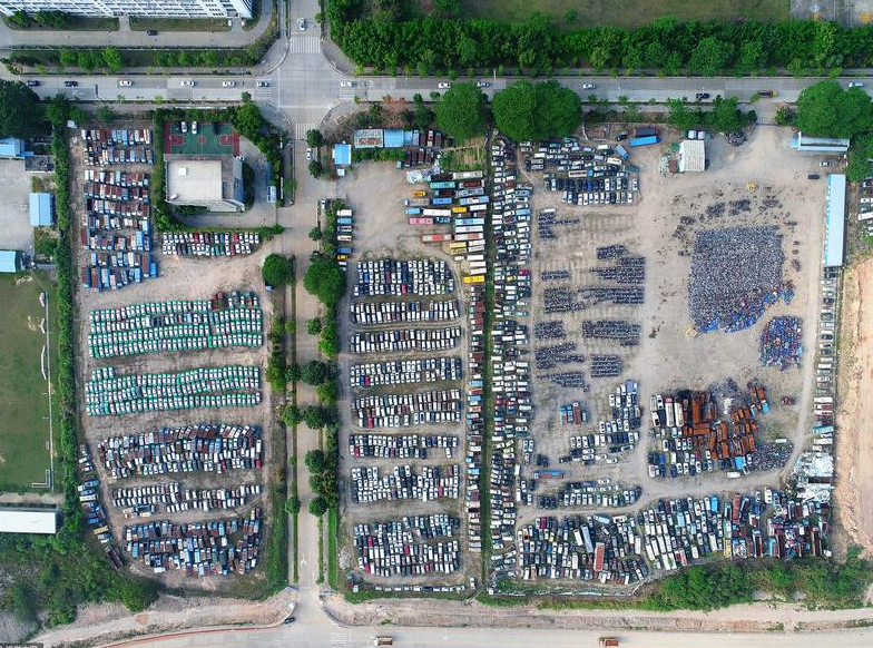 2017年4月4日,深圳宝龙交警中队扣车场内,数万辆摩托车和汽车将数个足球场大的地方摆放得满满当当,车辆如千军万马在列队,场面非常壮观。视觉中国