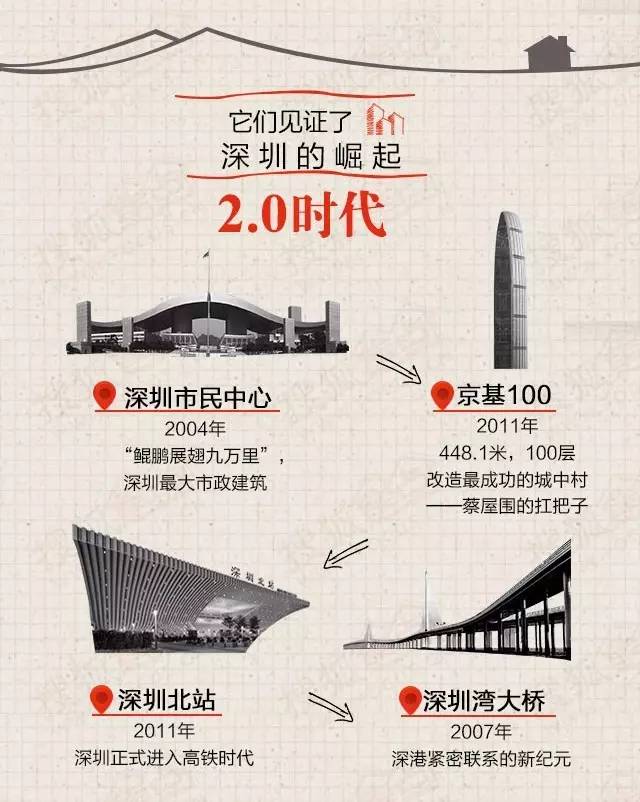 回顾深圳37年建设史,从矮屋到高楼,从农田到大道,从小渔村到大都市……凝结的是万千前赴后继建设者的赤诚。建筑是历史与文化最直观的载体,深圳30余年间崛起的万千广厦,期间涌现的众多地标,正是这座城市精神的象征,以及无与伦比的魅力所在。