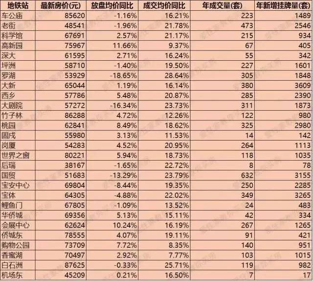 对于非城市核心区来说,邻铁楼盘具有较为明显的地铁辐射效应,且距离越近,价格越高,辐射效应越明显。今天整理了深圳所有地铁线路站点1000米范围内的小区楼盘价格、成交量等数据,希望能为大家置业提供有用的参考!