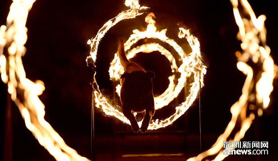 魔幻!深圳警犬夜训跳火圈 上演大片既视感
