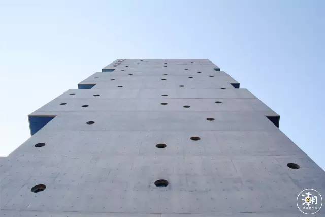 大楼侧面也不走寻常路!外表是混凝土打造!蜂窝般分散开的小圆孔,兼具室内采光和通风的作用。透过圆窗看室外的风景,创意十足~