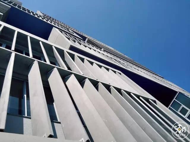 普通建筑用窗帘来遮阳,但海洋大楼用的是一排排立面板楼,加上大量半室外空间,建筑外形也成了一种微景观。