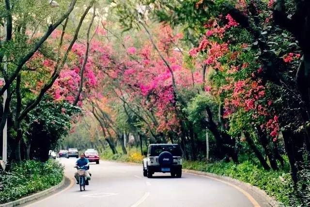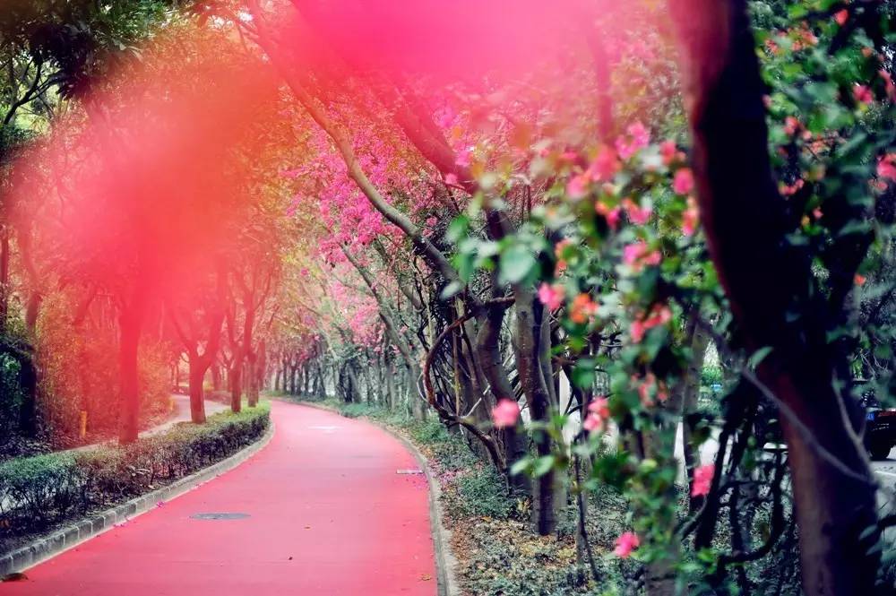 簕杜鹃盛开的深圳最美绿道,