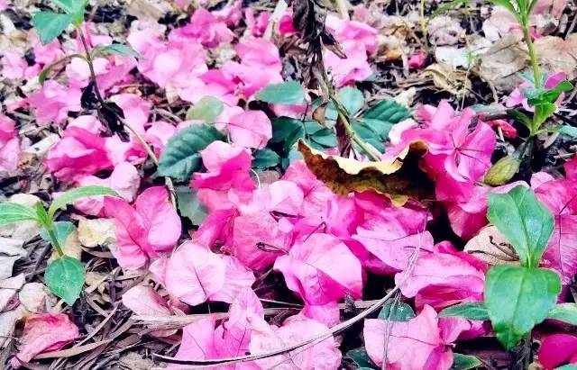 地上的花瓣,多得可以拿来铺成红毯~