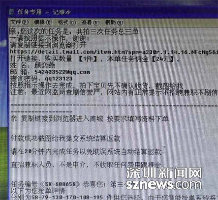 案发后,深圳网警成立专案组,于3月下旬在安徽省庐江县抓获陈某龙,现场查获数百余条某宝账号注册信息。嫌疑人陈某龙供称,其专门针对在校大学生或刚参加工作想利用空余时间赚钱的年轻人,通过QQ群等即时通讯软件或者微博、微信、论坛等网络平台里贴出“替网店进行刷信誉度兼职人员”、“网络兼职日赚百元”等虚假诈骗兼职信息,若有人上当与其联系,就让受害人在某网络商城上购物,并承诺退还本金,另外支付给受害人一定的报酬佣金,通常前几单数额较小,受害人一旦发现被骗,就立即以各种理由推脱或直接消失,以此达到诈骗获利的目的。目前,陈某龙因涉嫌诈骗已被深圳市公安机关刑事拘留。(通讯员 曾祥龙、黄康灵、苏洪冬)