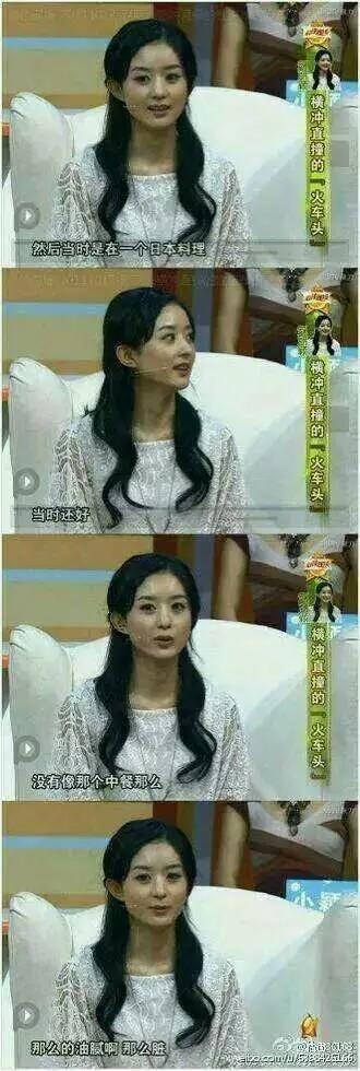 赵丽颖在一次节目中说,吃日本料理,没有中餐那么油那么脏。一句话引来许多观众的强烈不满,吃了几十年中国菜却看不起,遭到许多人痛骂。
