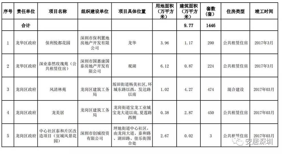 最完整名单!深圳2017第一季度保障房开工、建成项目一览
