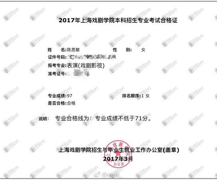 日前,一位获得中央戏剧学院与上海戏剧学院表演专业双料第一的美女考生被曝光。这位美女考生名叫陈思敏,眉眼间充满英气,颇像俞飞鸿,不是现在大热的“网红脸”。