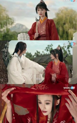 官方剧照中的郑爽红衣红唇