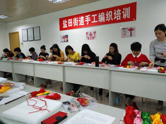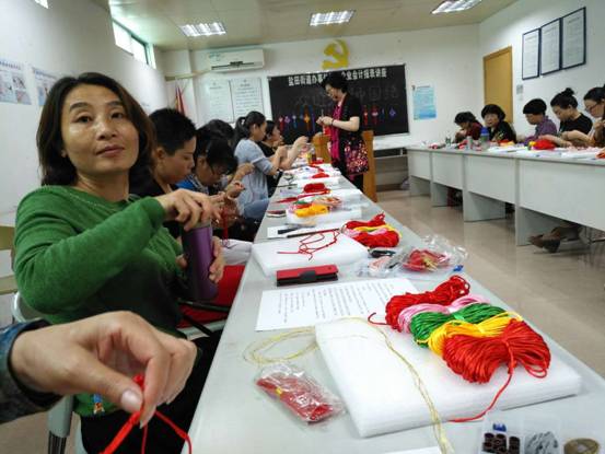 培训班特邀辖区具有多年编织教学经验的李老师做指导,本着简单、易学、实用的原则,注重培养学员的动手能力。培训现场气氛热烈,学员们心灵手巧,相互交流,很快熟练起来,一个个做得有模有样。老师在教学中积极与学员互动,耐心讲解,让学员在短时间内学会多种中国结手工编制技能。