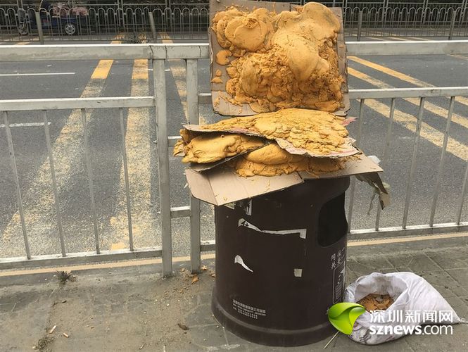 减速带拆除后的热熔标线涂料放至垃圾桶处