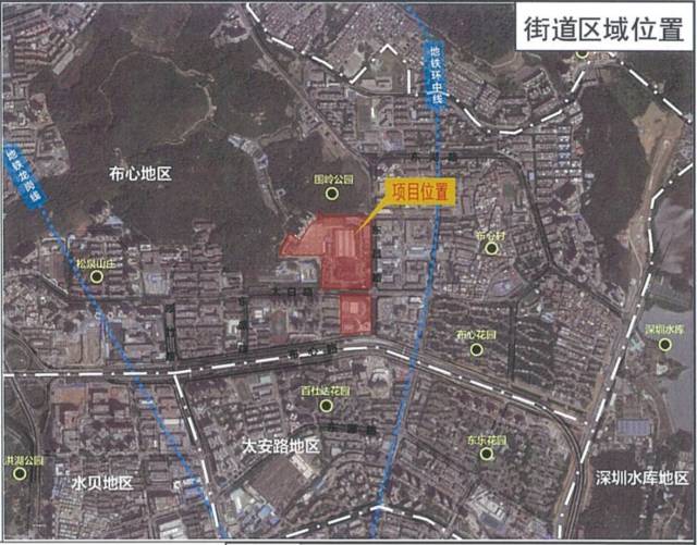 项目位于罗湖区东晓街道,南邻布心路,东邻东昌路,太白路经过将项目分成南北两个区域。项目更新单元用地面积90283.9平方米,拆除用地面积86538.3平方米,开发建设用地面积67903.0平方米(含纳入零星国有未出让用地1169.6平方米)。