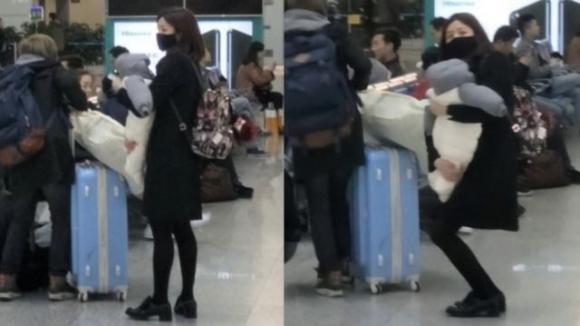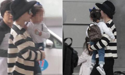 在独自抱娃出门时,大衣也是紧紧裹着朵朵,面对镜头依旧是一脸警惕。