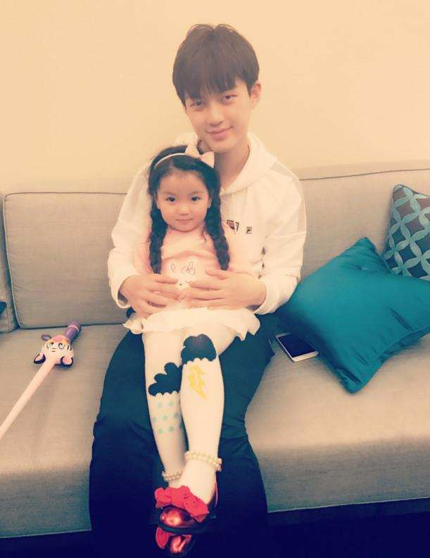 跟“爸爸”董力合照,感觉长高了不少,有多少人期待这对cp。