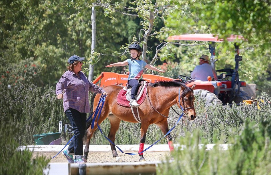 萌!小七学骑马 爹妈 哥哥骄傲围观拍照
