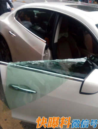 昨日(4月12日)中午,深圳市民梁先生向“快曝料”微信号报料称,13:50他刚出科学院地铁站,就看到一辆粤B牌百万豪车玛莎拉蒂停在路边,车窗玻璃被撞破,周边不少路人围观,原来是一个饿了么的外卖小哥骑车时不小心和玛莎拉蒂相撞,小车车窗玻璃“挂彩”。