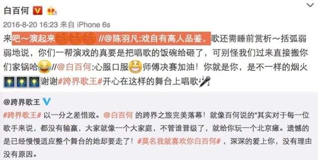 翻看白百何陈羽凡的微博,二人最后一次微博互动是在去年8月,而翻看二人的微博关注列表,二人已互相取消关注。